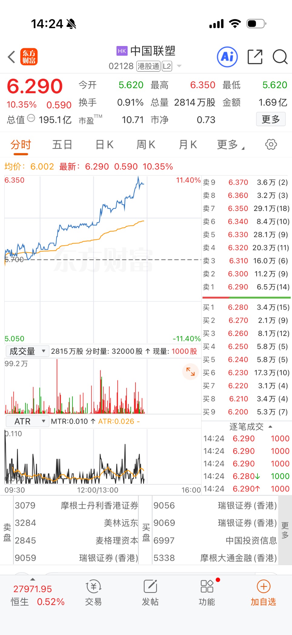 上证报中国证券网讯1月29日,中国联塑午后一度涨超11%,截至14时24分,涨10.35%,报6.29港元/股。开年以来,中国联塑累计涨幅超30%。